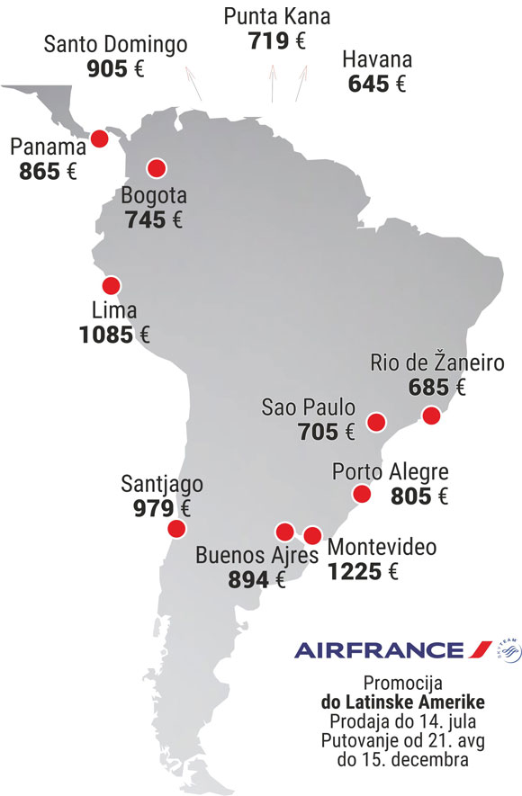 Air France & KLM objavili su novu promotivnu akciju do Centralne i Latinske Amerike – jako dobre cene za Havanu, Rio de Žaneiro, Sao Paolo, Bogotu i Panamu, sada je prilika za Južnu Ameriku!