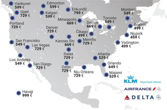Air France i KLM su objavili veliku promociju za gradove u SAD i Kanadi! Promocija se odnosi na putovanja izvan letnje sezone, do 26. juna i nakon 15. avgusta. Karte po promotivnim cenama možete kupiti do nedelje, 7. aprila ove godine.