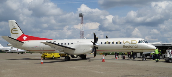 Foto: Avion Saab 2000 Etihad Regionala na beogradskom aerodromu po dolasku iz Ženeve