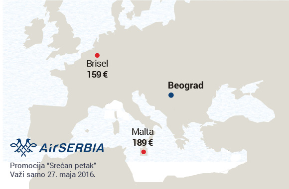 Nova jednodnevna promotivna akcija Air Serbije, poznata pod imenom "Srećni petak" je objavljena za 27. maj.