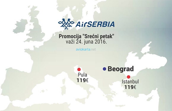 Nova jednodnevna promotivna akcija Air Serbije, poznata pod imenom "Srećni petak" je objavljena za 24. jun.