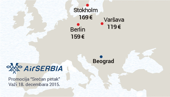 Nova jednodnevna promotivna akcija Air Serbije, poznata pod imenom "Srećni petak" je objavljena za petak, 18. decembar.
