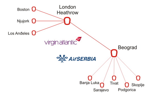 Prema ovom sporazumu Air Serbia prevozi putnike od Beograda do londonskog čvorišta Virgin Atlantica na aerodromu Heathrow, odakle ih Virgin prevozi dalje do svojih krajnjih interkontinentalnih destinacija širom sveta.