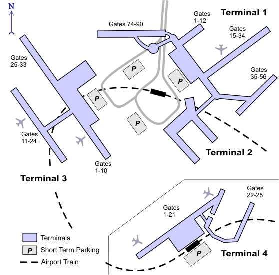 Minimalno vreme za konekciju u dolasku iz Beograda iznosi 90 minuta. Putnici ostaju u tranzitnoj zoni. Potrebno je da prate ljubičaste znake za “flight connections” i da se aerodromskim autobusom po iskrcavanju prevezu sa Terminala 4 na Terminal 3.