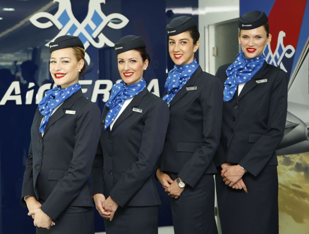 Na svečanom otvaranju nove poslovnice predstavljene su i nove uniforme za kabinsko i zemaljsko osoblje Air Serbije. Žene će imati plave komplete sa suknjom do kolena i belom košuljom. Oko vrata će nositi plave marame sa sivim znakom Air Serbije. Muškarci će umesto marama nositi kravate istog dezena. Perseri će umesto plavih imati crvene marame ili kravate, a zemaljsko osoblje svetlo plave.