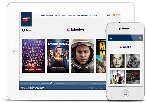 Air Serbia, nacionalna aviokompanija Republike Srbije, značajno je unapredila iskustvo gostiju na letu uvođenjem "Elevejt plej" (Elevate Play), besplatne usluge učitavanja i reprodukcije zabavnih sadržaja.