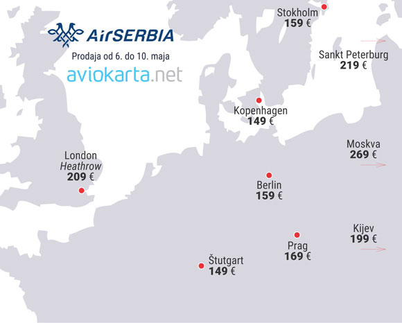 Sve cene uključuju prateće takse, prtljag ručni i čekirani 1 kofer do 23 kilograma, posluženje na letovima, kao i naknadu za izdavanje karte. Za letove vikendom (petak, subota, nedelja) karte su skuplje za 10 evra po pravcu. Deca do 12 godina nemaju popust na promotivnu cenu.
