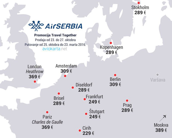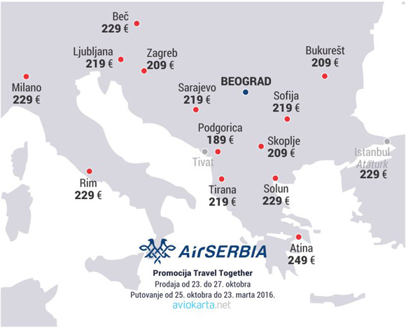 Promocija traje od petka, 23. oktobra, do utorka, 27. oktobra, i važi za sva putovanja u periodu od 25. oktobra ove, do 23. marta sledeće godine, osim u periodu od 18. decembra do 11. januara.