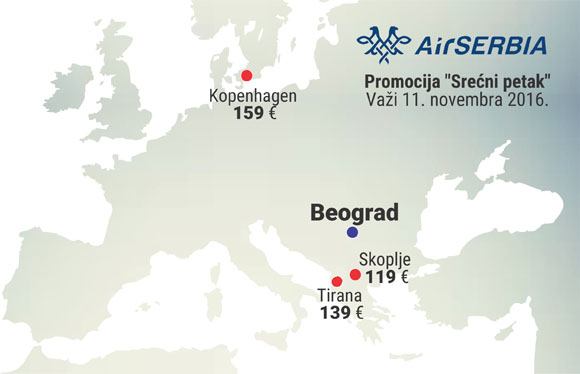 Nova jednodnevna promotivna akcija Air Serbije, poznata pod imenom “Srećni petak” objavljena je za 11. novembar!