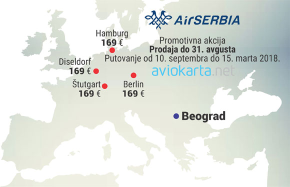 Povratna karta u ekonomskoj klasi do Štutgarta, Hamburga, Berlina i Diseldorfa tokom promocije košta 169 evra.