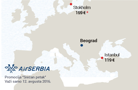 Nova jednodnevna promotivna akcija Air Serbije, poznata pod imenom "Srećni petak" je objavljena za 12. avgust.
