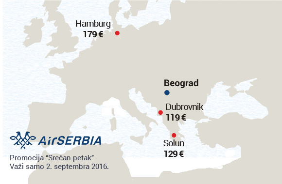 Nova jednodnevna promotivna akcija Air Serbije, poznata pod imenom "Srećni petak" je objavljena za 02. septembar!