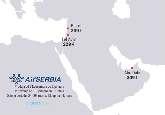 Mapa: Promotivne cene do gradova Bliskog istoka