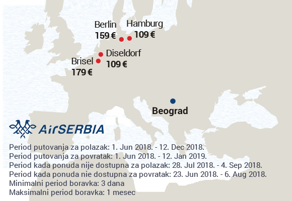 Promotivne cene se odnose na putovanja koja ne obuhvataju vikend i traju kraće od tri dana, Air Serbia ne primenjuje ovu promo tarifu – kao ni popust za decu do 12 godina.