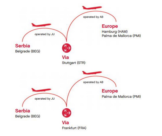 Ono što je potvrđeno u saopštenju je da će Airberlin u ponudi imati letove Jat Airwaysa između Beograda i Berlina, Diseldorfa, Frankfurta i Štutgarta, koji će nositi oznaku Airberlina i kojima će ova kompanija znatno proširiti svoju saobraćajnu mrežu u jugoistočnoj Evropi.