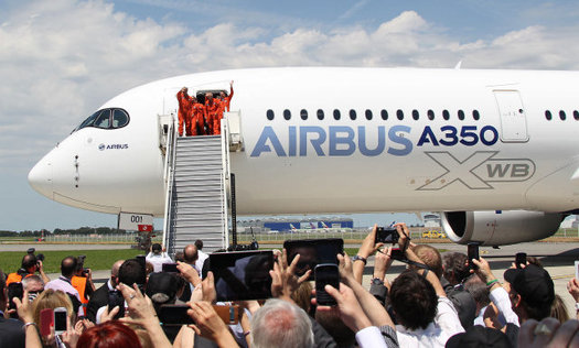 Avion A350 će biti predstavljen i na jubilarnom pedesetom pariskom avio sajmu koji danas počinje na aerodromu Le Burže (Le Bourget). Na ovom sajmu se očekuju i nove narudžbe ovog aviona. Trenutni naručioci su Qatar Airways, British Airways i Cathay Pacific, a Airbus se nada da će avion uspeti da otrgne deo tržišta od Boeingovih modela B777 i B787-9 (Dreamliner).