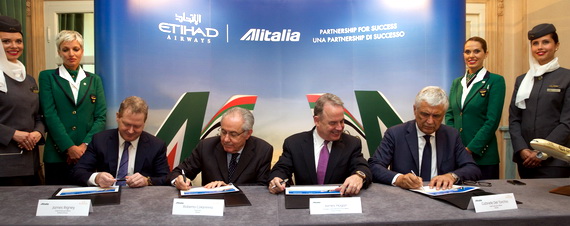 Alitalia će se tako uz investiciju Etihada od 387,5 miliona evra za 49 posto vlasništva naći u društvu sa australijskom kompanijom Virgin Australia, indijskim Jet Airwaysom, nemačkim Air Berlinom, irskim Aer Lingusom, srpskom Air Serbijom, švajcarskim Darwin Airlineom (Etihad Regional) i sejšelskim Air Seychellesom.
