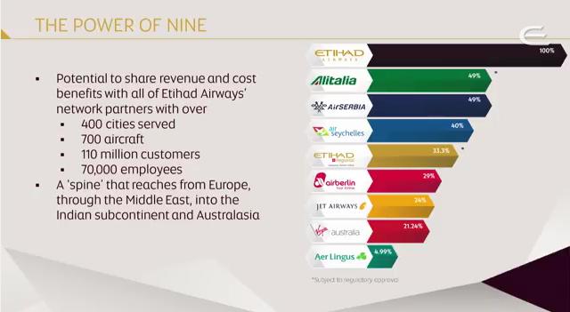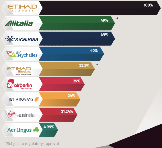 Etihad Airways iz Abu Dabija, koji se smatra nacionalnom aviokompanijom Ujedinjenih Arapskih Emirata nastavlja sa ulaganjima u druge aviokompanije stvarajući novu globalnu alijansu koja je zasnovana na njegovom vlasničkom udelu.