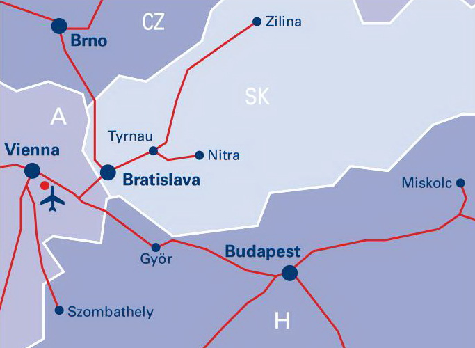 Sa aerodroma postoje i autobuski polasci ka gradovima u susednim državama: Bratislavi, Budimpešti, Đeru, Brnu i Pragu.