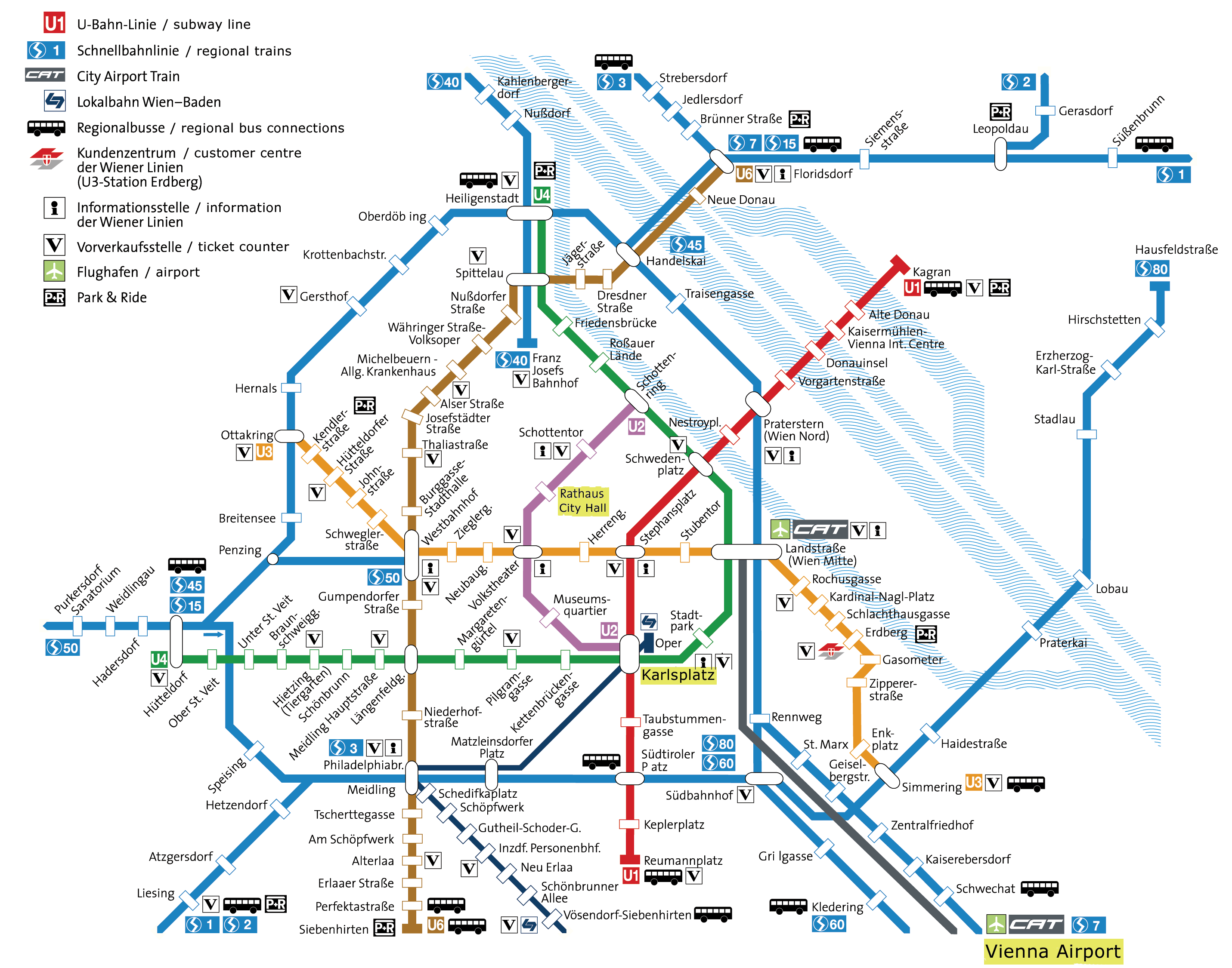 je linija gradske železnice (S-bahn) koja prolazi kroz aerodromsku stanicu. Ova linija povezuje mesto Wolfsthal sa stanicom Praterstern u Beču. Vožnja između aerodroma i centra traje oko 25 minuta. Prvi voz na ovoj liniji iz centra polazi u 4:31, a poslednji u 23:46. U suprotnom smeru prvi polazak je u 4:54, a poslednji u 00:18. Vozovi saobraćaju na svakih pola sata (okvirno). Kada se sa aerodromske železničke stanice polazi ka gradu treba birati smer Mannsworth (sledeća stanica prema gradu), a kada se iz centra grada kreće ka aerodromu treba birati smer: Wolfsthal (poslednja stanica).Centralne gradske stanice na ovoj liniji su: Rennweg (pored dvorca Belveder), Wien Mitte (sam centar grada) i Wien Nord – Praterstern, koji je početna stanica linije S7.