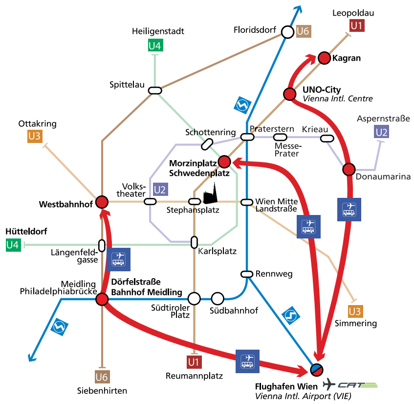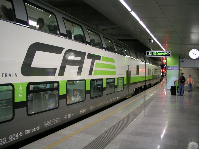Sa iste aerodromske železničke stanice polazi i ekspresni voz CAT. To je dvostpratni voz u zelenoj boji, brendiran kao CAT, što je skraćenica od City Airport Train. Voz saobraća između aerodroma i železničke stanice Wien Mitte, bez usputnih stajanja. Vožnja traje 16 minuta, a voz polazi na svakih pola sata.
