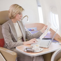 U biznis klasi obično putuju poslovni putnici, pa je od velike važnosti da im se i tokom leta omogući da rade. Zbog toga sedišta u biznis klasi često imaju posebne lampe za čitanje, utičnice za razne elektronske uređaje (mobilne telefone, prenosne ili tablet računare). Mnoge aviokompanije omogućavaju putnicima da se tokom leta povežu na bežičnu internet mrežu ili na mrežu mobilne telefonije. Kada su ove usluge dostupne, za putnike u biznis klasi one su obično besplatne. Putnicima je na raspolaganju i bogatiji sistem zabave tokom leta sa većim izborom zabavnih sadržaja.