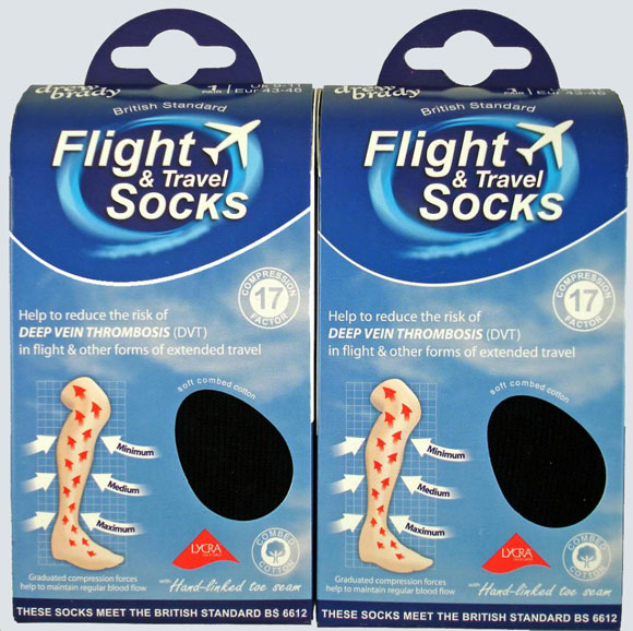 Postoje specijalne medicinske čarape namenjene za smanjenje rizika od duboke venske tromboze kod dugih putovanja. Mogu se naći u apotekama i koštaju oko 1.500 dinara.