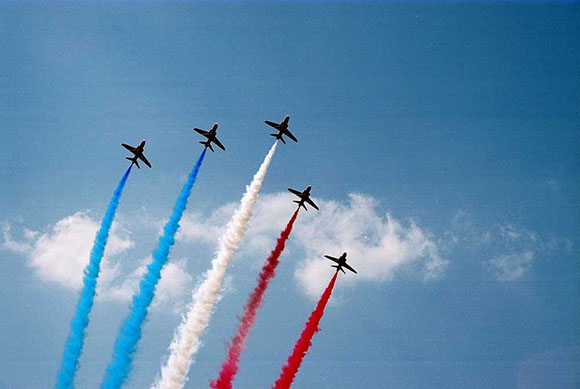 Fotografija desno: Akrogrupa britanskih vazduhoplovnih snaga (RAF) “Red Arrows” na jednom od nastupa