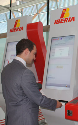 Tri od četiri putnika Iberije na madridskom aerodromu samostalno štampa svoj kupon za ukrcavanje (boarding pass) saopštila je španska nacionalna aviokompanija. Čak 75% putnika koristi mobilne telefone, internet sajt Iberia.com ili aerodromske kioske za samostalno čekiranje (prijavu za let) tvrdi Iberia. Ova kompanija je 1. avgusta instalirala novi program u svoje kioske na svom glavnom aerodromu Barajas (Barahas) u Madridu, nakon čega je za samo pet dana povećano korišćenje ovih uređaja za 10%.