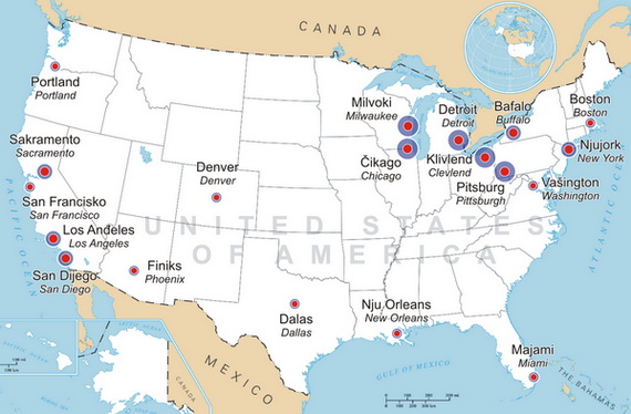 Najveći broj Srba u Sjedinjenim Državama se nalazi u Čikagu (procene su da tamo živi preko 200.000 ljudi koji imaju srpsko poreklo. Severoistok SAD je mahom bio krajnje odredište naših iseljenika u svim dosadašnjim talasima isaeljavanja počev od XIX veka pa do devedesetih godina prošlog veka. Gradovi koji imaju značajnu srpsku populaciju su pored Čikaga (Ilinois) i Klivlend (Ohajo), Pitsburg (Pensilvanija), Detroit (Mičigen), Milvoki (Viskonsin).