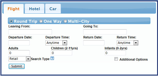 - Pretraga letova. Putnici unose osnovne podatke o putovanju (odlazni i dolazni aerodromi, odlazni i dolazni datumi, stepen fleksibilnosti datuma, vrsta tarife ili putnog razreda, broj putnika, njihov uzrast, jezik na kome će se nastaviti rezervacija, valutu za izražavanje cena i sl.