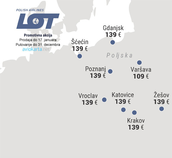 Povratna karta u ekonomskoj klasi do Varšave je sada samo 109 evra, a za putovanje preko Varšave do drugih poljskih gradova – do Gdanjska, Katovica, Žešova, Poznanja, Krakova, Šćećina i Vroclava, karte koštaju 139 evra.