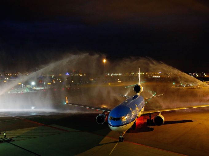 Avion, koji nosi ime glumice Odri Hepbern (Audrey Hepburn) sleteo je na amsterdamski aerodrom Schiphol sa leta KL 672 u 6:35, gde je dočekan počasnim vodenim lukom.