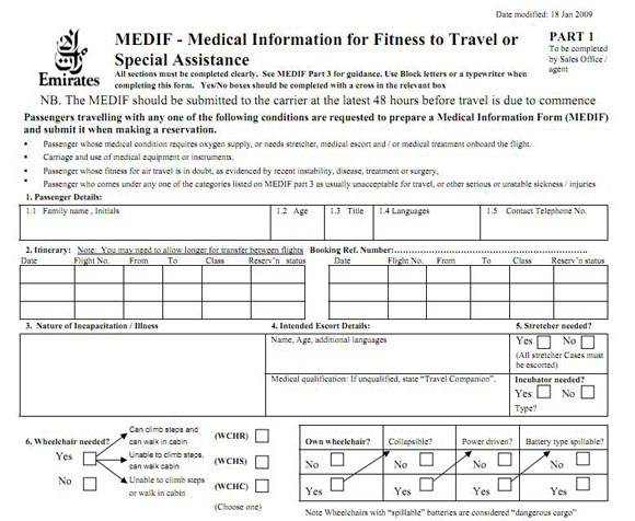 Medif obrazac je jedinstven mecidincki formular univerzalan u celom svetu. On se zahteva od putnika u posebnim slučajevima kada njihova zdravstveno stanje može uticati na ostale putnike, posadu ili sam let. Medif nije potreban svim putnicima sa posebnim potrebama.