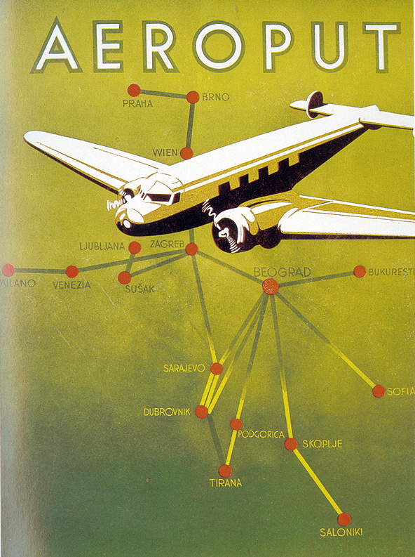 Aeroput je pre Drugog svetskog rata povezivao domaće aerodrome u Beogradu, Zagrebu, Ljubljani, Skoplju, Podgorici, Sarajevu, Dubrovniku, Nišu, Splitu, Rijeci (Sušak), Bitolju, Borovu. Aeroput je održavao i međunarodne linije od Beograda preko Zagreba do Graca i Beča, od Beograda preko Skoplja do Soluna i Atine, od Ljubljane do Klagenfurta, od Beograda preko Dubrovnika do Tirane, od Beograda do Budimpešte i od Zagreba do Budimpešte, Venecije i Rima.
