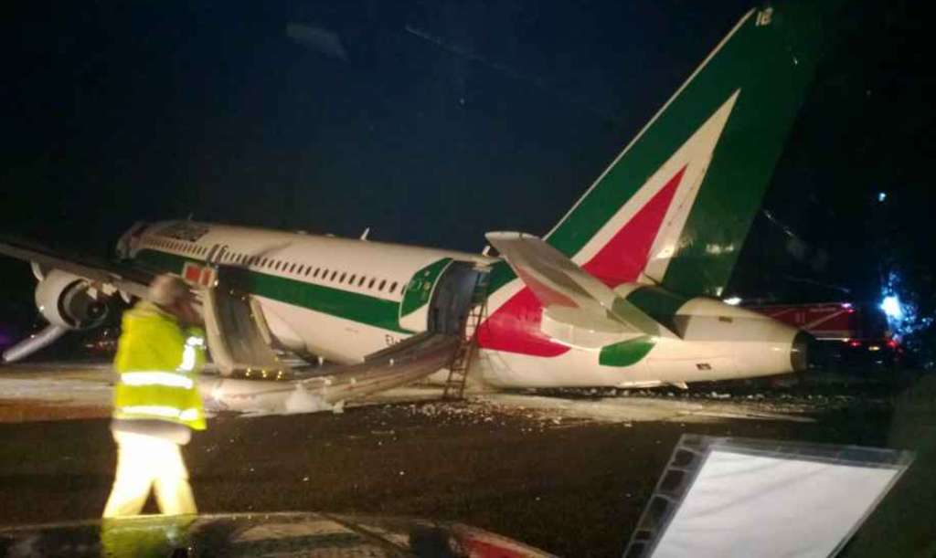Piloti su uspešno prizemljili avion bez bočnih točkova i putnici su se odmah nakon zaustavljanja pre kraja piste evakuisali preko vazdušnih tobogana. U saopštenju se navodi da je kapetan aviona iskusan pilot sa preko 15000 sali leta u Alitaliji, a prethodno je radio i kao vojni pilot.