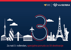 | Air Serbia je objavila novu veliku promotivnu akciju pod nazivom ‘Air Serbia proslavlja treći rođendan’ koja uključuje čak 33 destinacije iz mreže gradova do kojih ima direktne letove. |