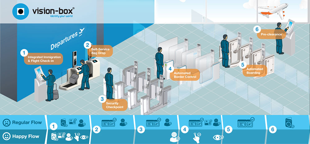 Happy Flow, kako je ime ovog tehnološkog procesa, zahteva od putnika samo jednu registraciju na aerodromu, a dalje se sve druge procedure obavljaju automatski uz pomoć skeniranja lica putnika.