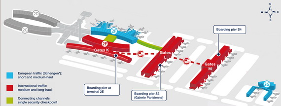 Novo izdvojeno pristanište S4 je deo terminala 2E. Paralelan je sa starijim pristaništem S3 koji je poznat pod imenom "Parisien" (videti mapu dole)