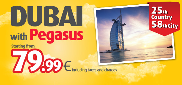 Foto desno: Pegasus nudi kartu u jednom pravcu od Istanbula do Dubaija po ceni od 79,99 evra sa uračunatim taksama