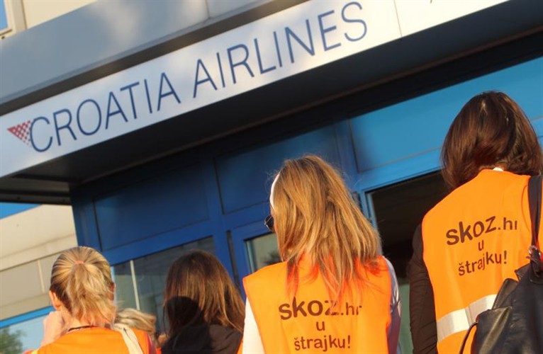 Foto: Radnici Croatia Airlinesa u štrajku, (c) tportal.hr