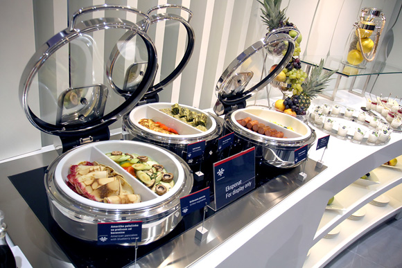 Gosti salona će moći da uživaju uz prepoznatljivi izbor hrane i pića Er Srbije, gde mogu da biraju između obroka u restoranu sa menijem ili sa bogatog “švedskog stola” koji sadrži izbor specijaliteta inspirisanih srpskom i internacionalnom kuhinjom. Vina lokalnih srpskih proizvođača, uključujući vinarije Radovanović i DiBonis, upotpunjuju širok izbor alkoholnih i bezalkoholnih pića, koji uključuje aperitive, žestoka pića i likere, koje obezbeđuju partner salona Rakia Bar. Poznati beogradski kafić Kafeterija će obezbediti autentični doživljaj ispijanja kafe, dok su brojni drugi brendovi pokazali zainteresovanost da se uključe u ponudu Premijum salona Er Srbije.