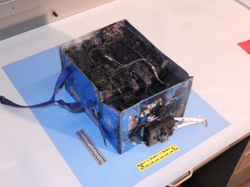 Foto: Izgoreli litijumski akumulator iz aviona ANA na aerodromu u Bostonu (SAD)