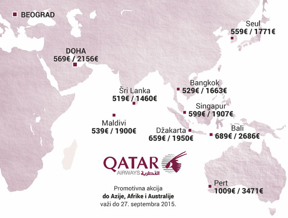Ko želi, a to može sebi i da priušti – da jesen i zimu provede na prelepim plažama Tajlanda, Balija ili Maldiva, sada treba da iskoristi priliku – Qatar Airways ove nedelje nudi svoje Azijske destinacije po cenama i do 40% nižim od standardnih.