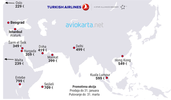 Turkish Airlines objavio je novu promotivnu akciju za putovanja iz Beograda preko Istanbula do jedanaest destinacija u Evropi, Aziji i Africi.