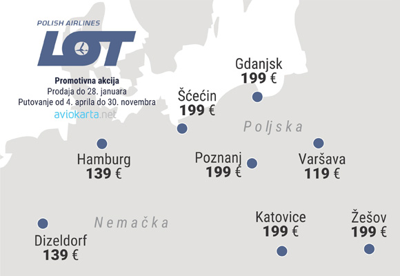 Poljska aviokompanija LOT je objavila promotivne cene od Beograda do Varšave i drugih poljskih gradova, kao i do Nemačke.