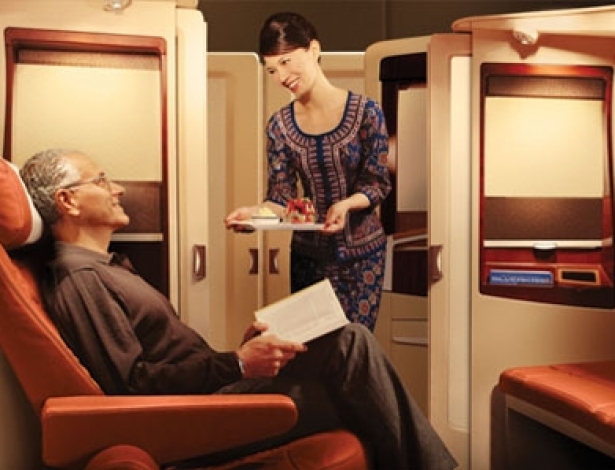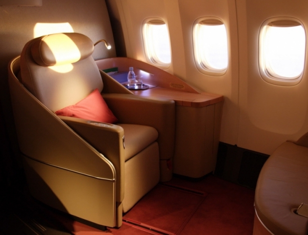 U prvoj klasi se ne nalaze standardna sedišta već su to sedišta najnovije tehnologije koja se veoma jednostavno pretvaraju u pravi pravcati krevet (rasklapaju se pod uglom od 180 stepeni). Sedišta su ograđena posebnim pregradama u okviru koji se nalaze i zasebni audio-video uređaji kao i prikljuci za internet tokom leta.