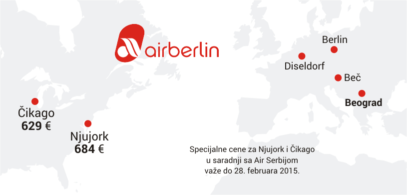 Njujork i Čikago su sada dostupniji uz saradnju Air Berlina i Air Serbije kroz kodšer sporazum.
