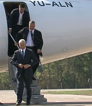 Među putnicima na tridesetominutnom letu bili su predsednik Srbije Boris Tadić, ministar odbrane Dragan Šutanovac i ministar ekonomije i razvoja Nebojša Ćirić.