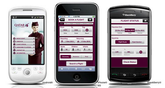 Qatar Airways je pokrenuo aplikacije za pametne mobilne telefone (Blackberry, Android i iPhone) i tako omogućio svojim putnicima da obave mnoštvo raznih procedura samostalno i bez čekanja u redovima.